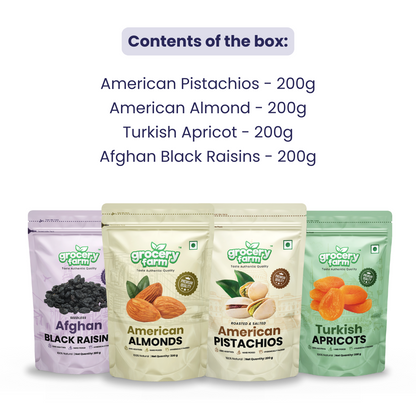 Make your celebrations timeless with a luxurious selection of American Pistachios, American Almonds, Turkish Apricots, and Afghan Black Raisins. Rich in tradition and sophistication, this hamper is a statement of class—perfect for honoring special bonds and moments.