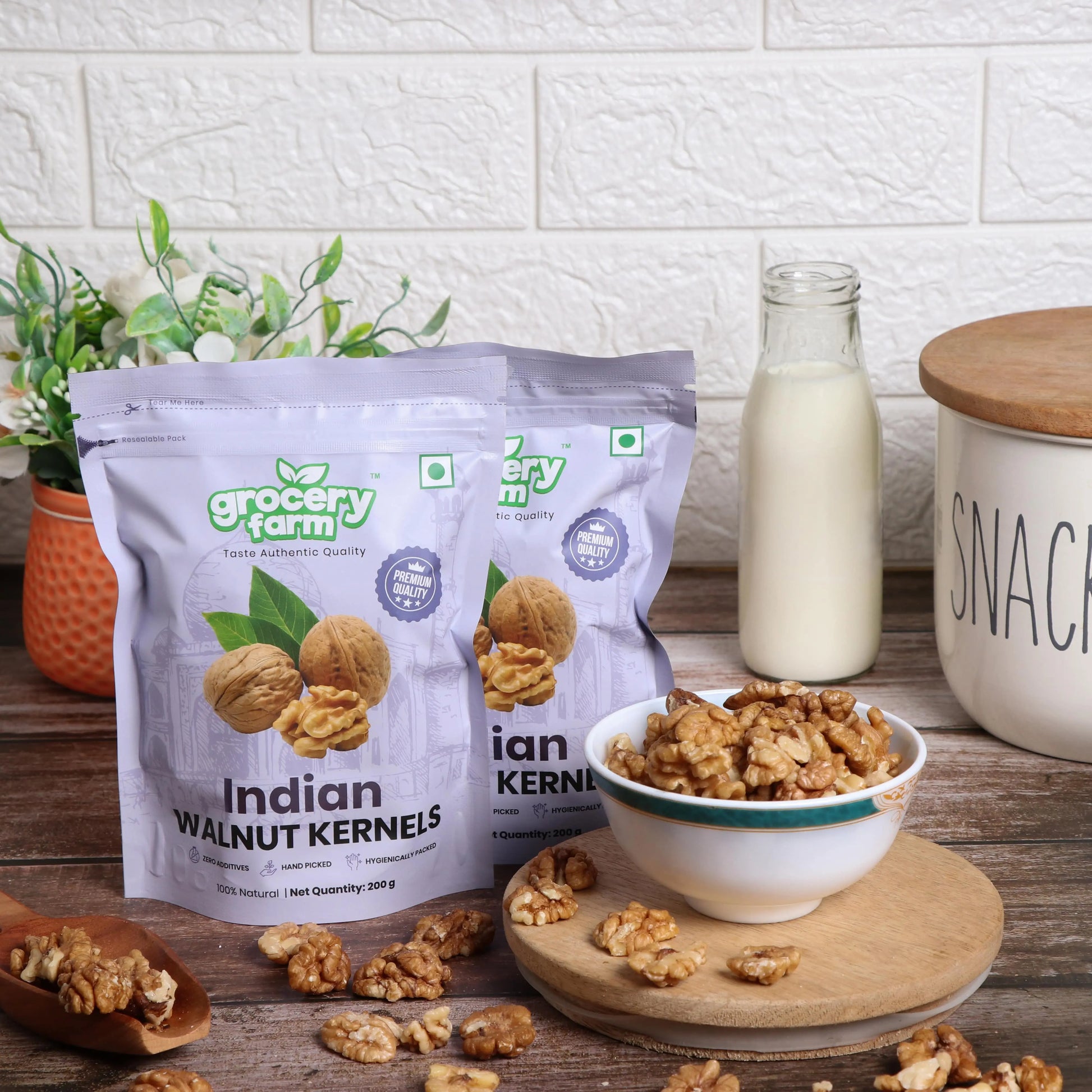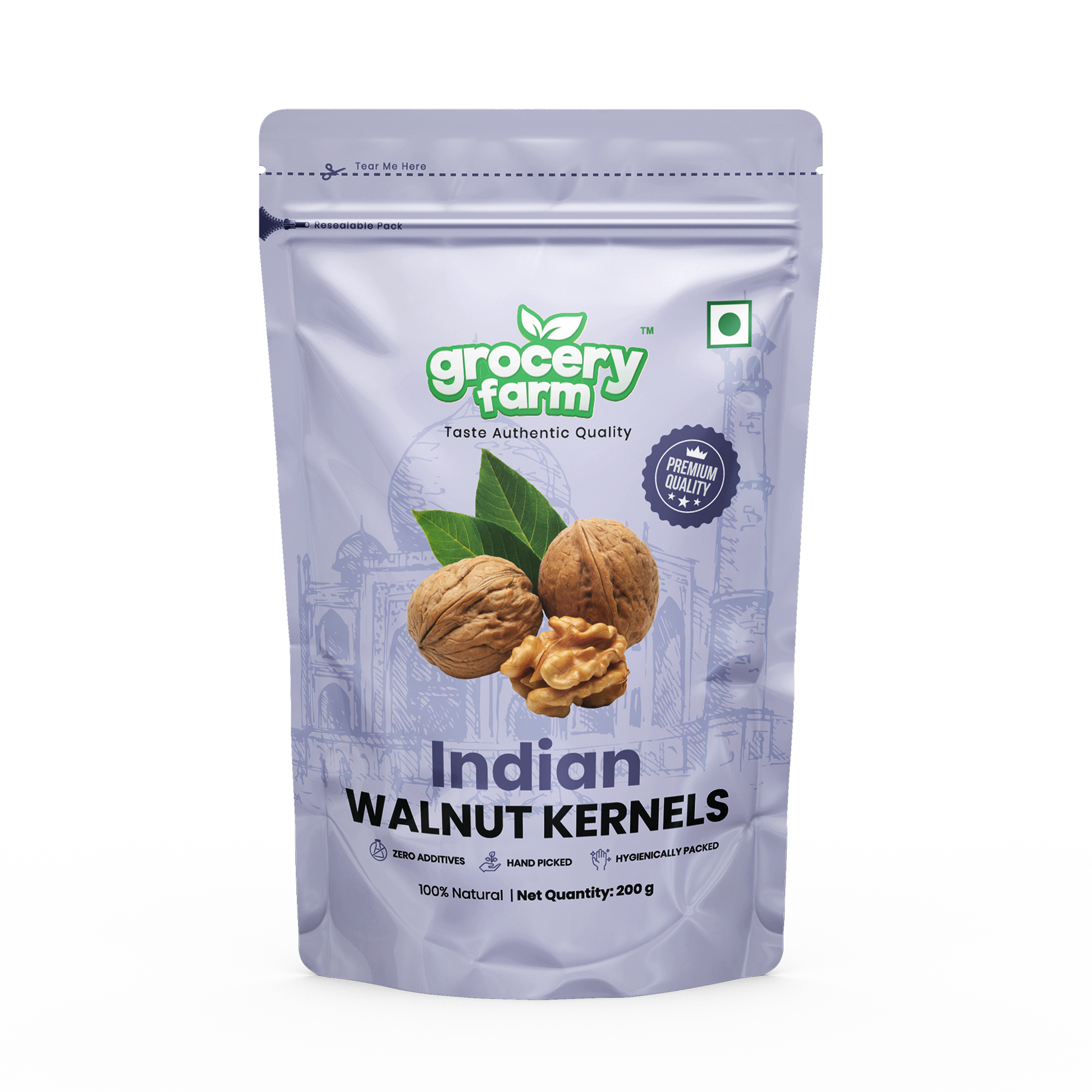 Taste the satiating, healthy treat of Grocery Farm's Indian Walnut Kernels - a premium quality of fine walnuts. These walnuts are rich in flavor and nutrition and are grown naturally. A perfect companion to all your healthy recipes.